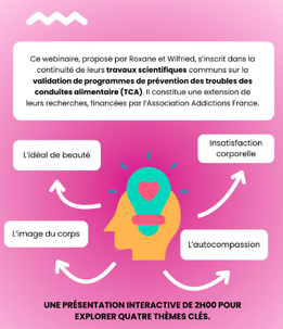 - Replay d’un webinaire passionnant de Wilfried Symphor et Roxane Turgon, psychologues et respectivement doctorant et docteure en psychologie, expliquant comment notre image corporelle peut influencer notre santé mentale et notamment notre comportement alimentaire. Ils y introduisent les notions de neutralité corporelle et d’auto-compassion comme pistes de réflexion.